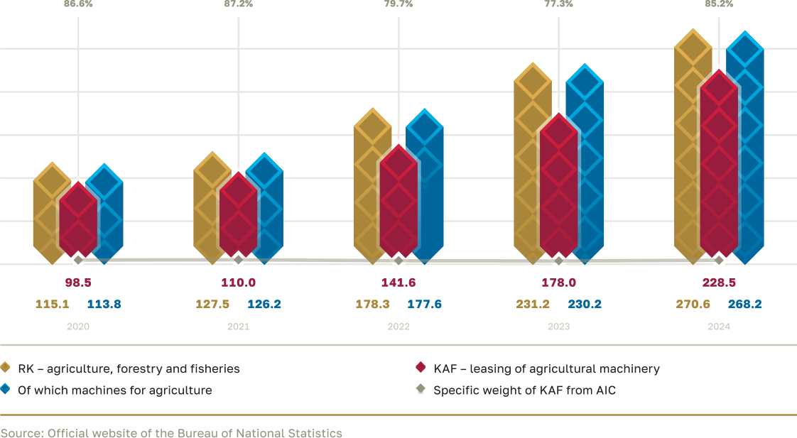 For the period from 2000 to 2024, the Company invested approximately 1,634.0 billion KZT in the agro-industrial complex, including equipment leasing and loans for previously financed investment projects.