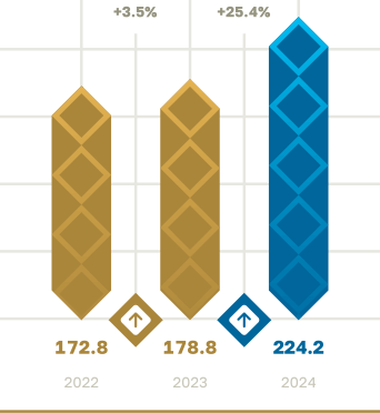 | 178.8 bln KZT | 224.2 bln KZT | 25.4% |