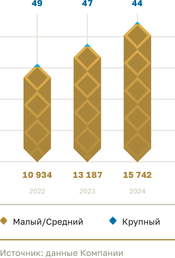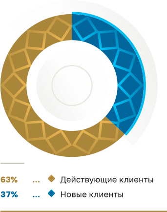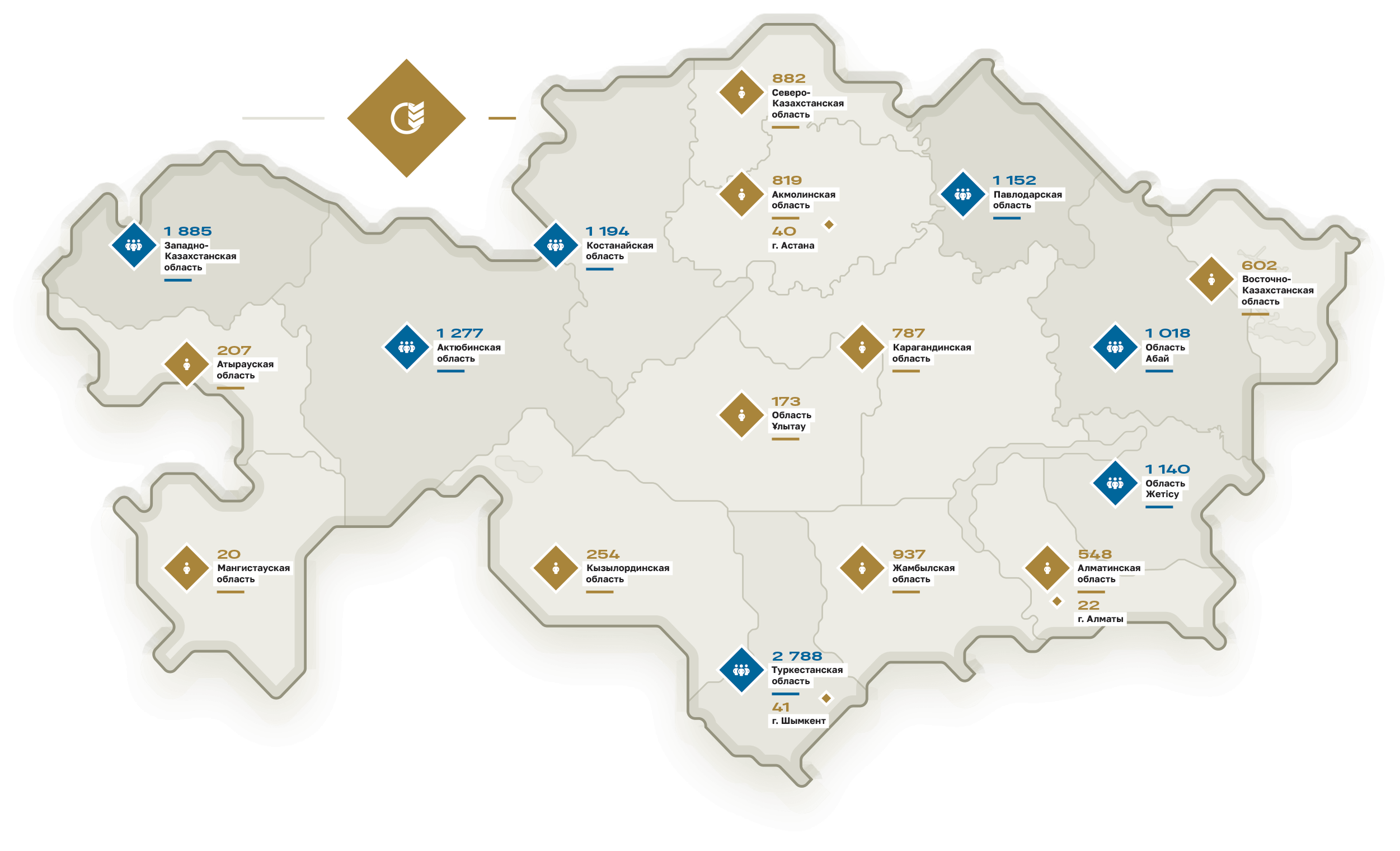 В региональной карте клиентов Компании, Туркестанская, Западно-Казахстанская, Актюбинская, Костанайская, Павлодарская, Жетысу и Абай области насчитывают более тысячи клиентов.