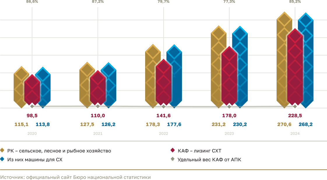 - 85,21% от общего объема стоимости договоров лизинга машин для сельского и лесного хозяйства по Казахстану.